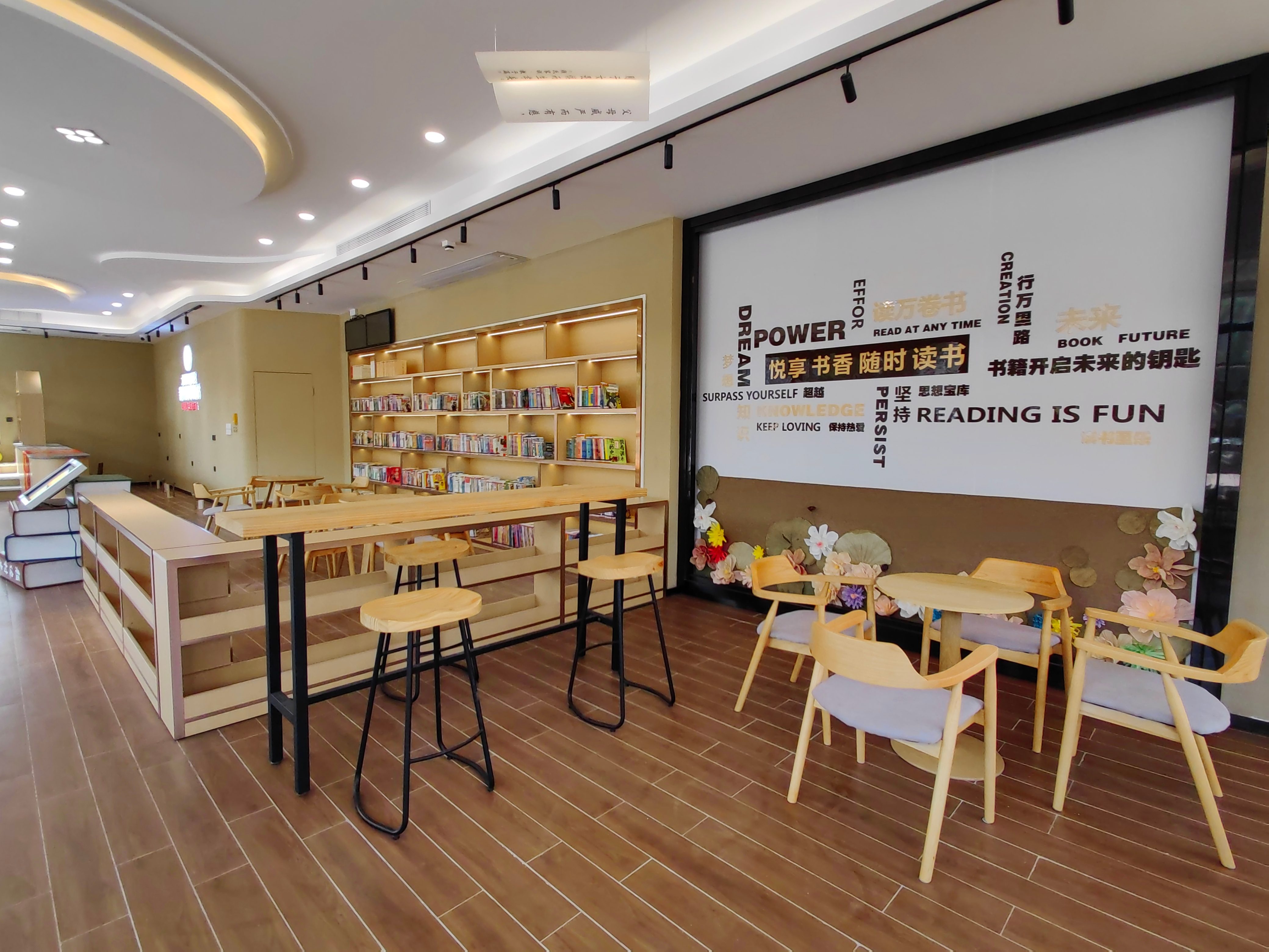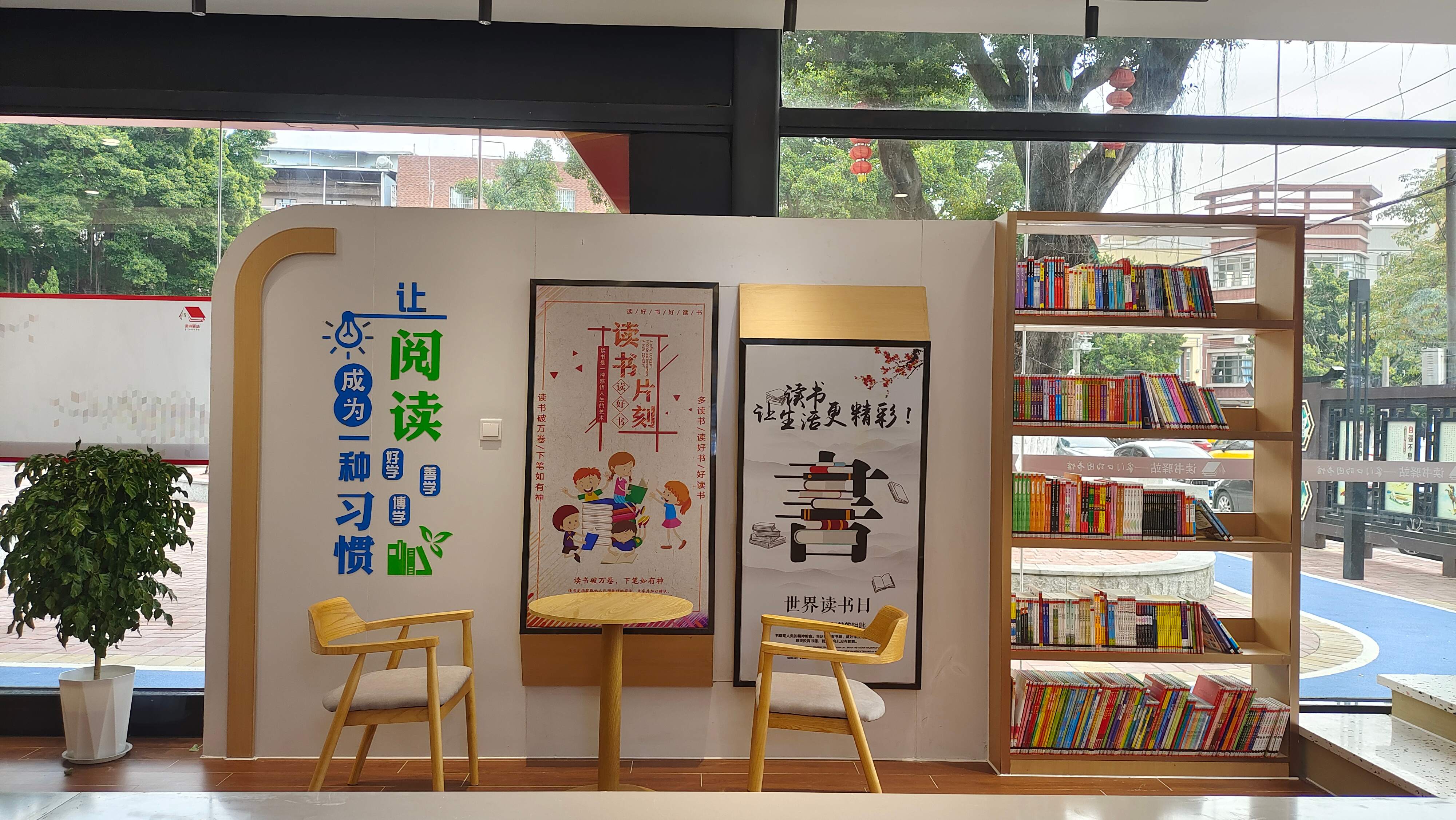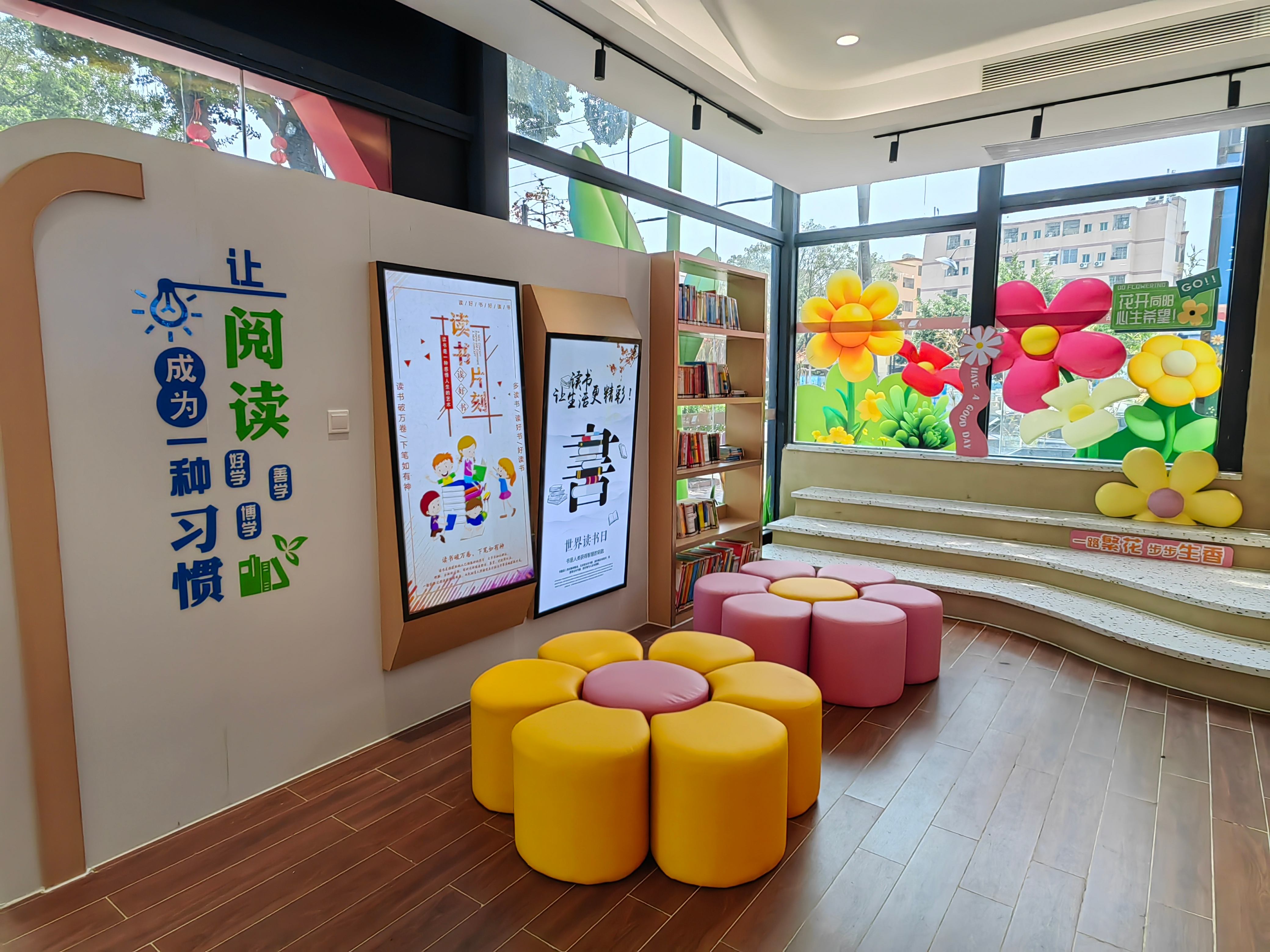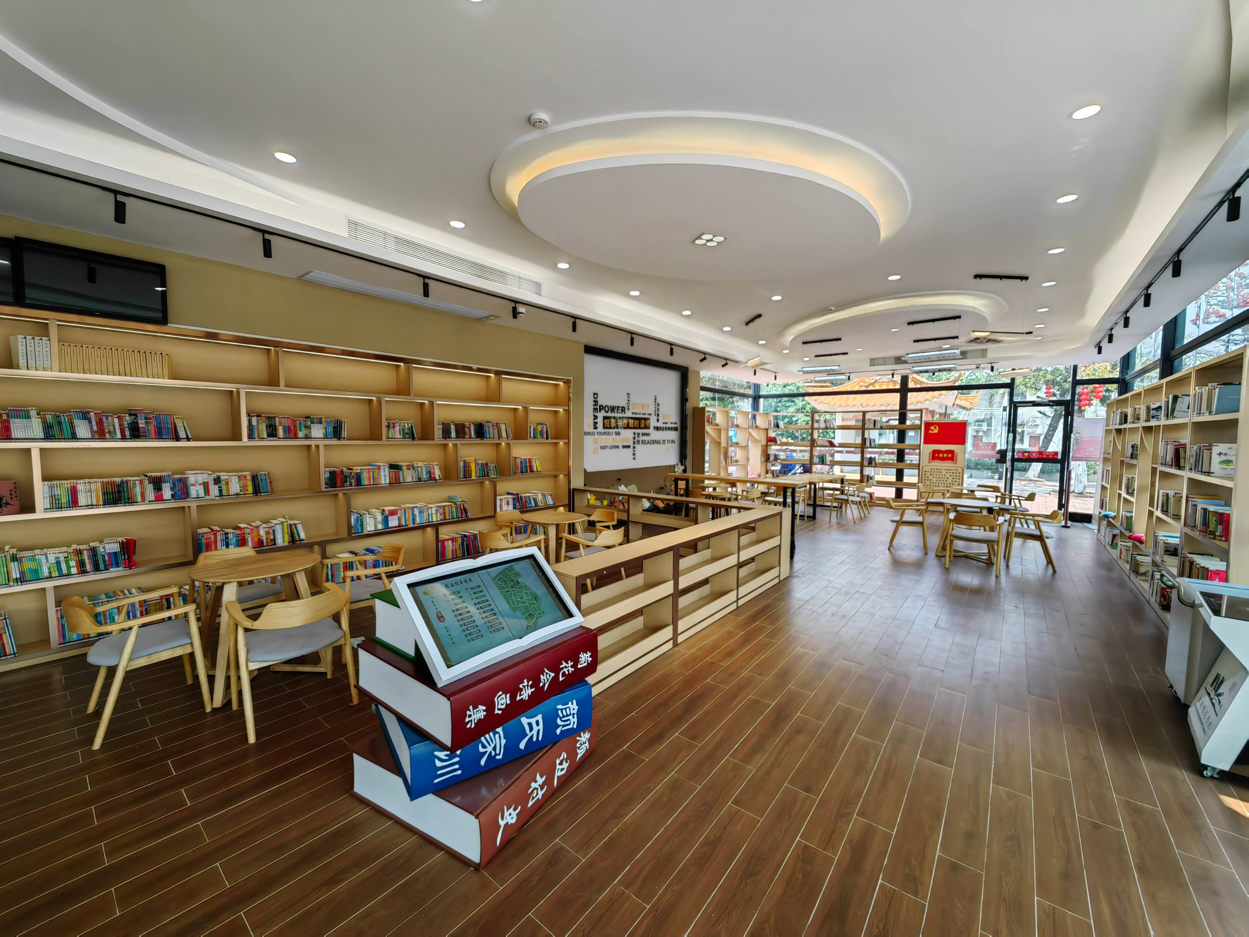 该站外观巧妙融入颜边村历史悠久的颜氏大宗祠、菊花会及灯酒会等历史文化元素,设计彰显传统意趣,室内装饰则以原木风格为主,营造出自然质朴的整体氛围。桌椅与陈列细节简约而精致,让该站成为群众静心阅读的理想空间,也成为河西社区颜边村一处引人注目的文化地标与打卡点。