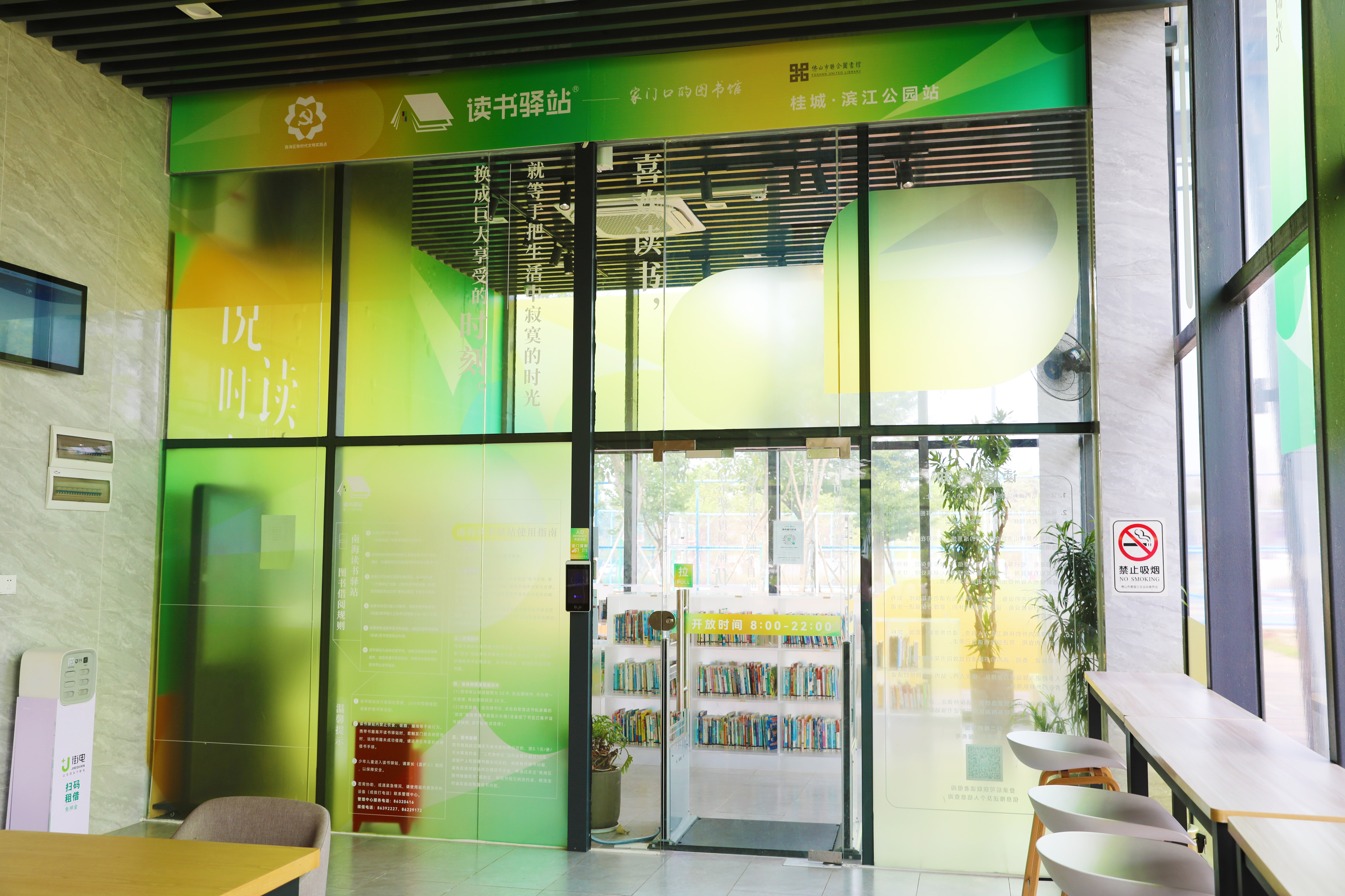 桂城·滨江公园站位于南海区桂城街道滨江公园内,于2022年3月对外开放。站点占地151平方米,内设阅读休闲区与藏书区,提供阅览坐席40个,馆藏纸质图书约2500册,电子图书约3000册,以“体育+阅读”为核心特色,打造兼具文化内涵与现代活力的特色阅读空间。